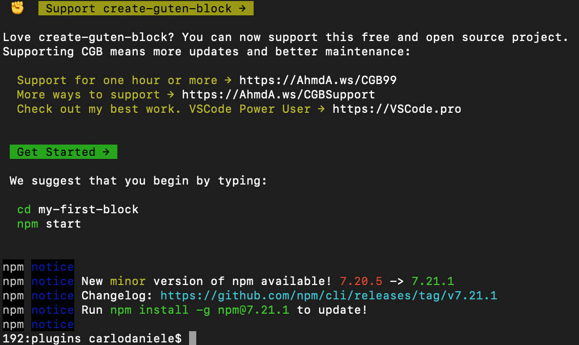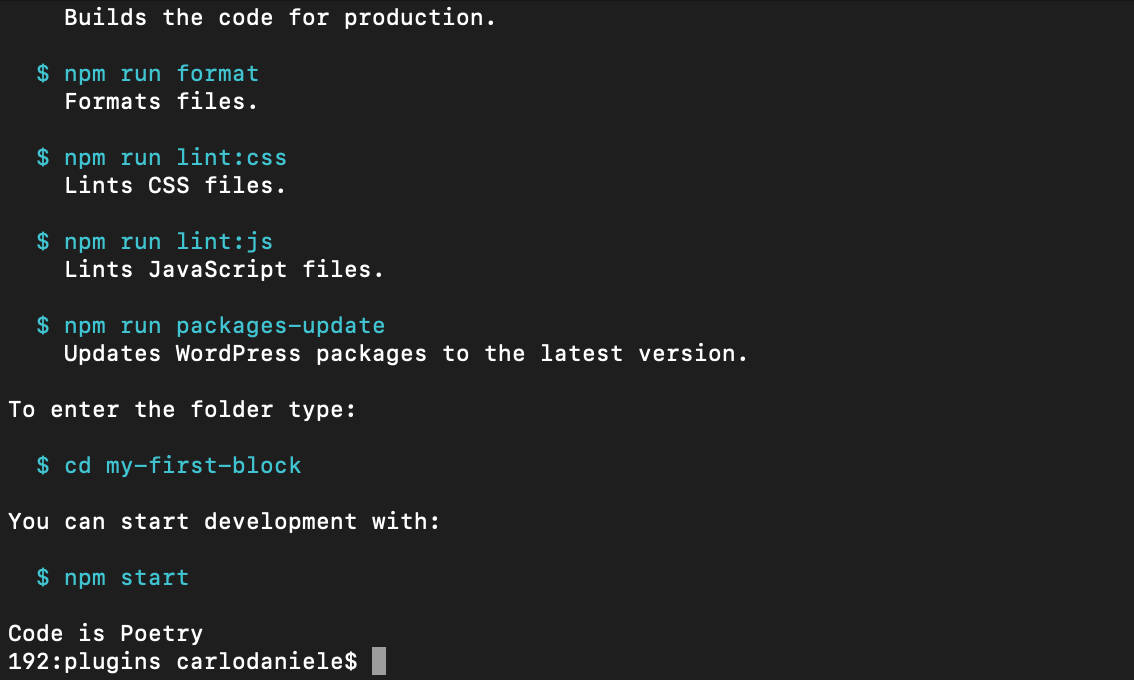 Now you need a starter block plugin to build upon. But instead of manually creating a development block plugin with all necessary files and folders, you can simply run a dev-tool providing all files and configurations you need to get started with block development.