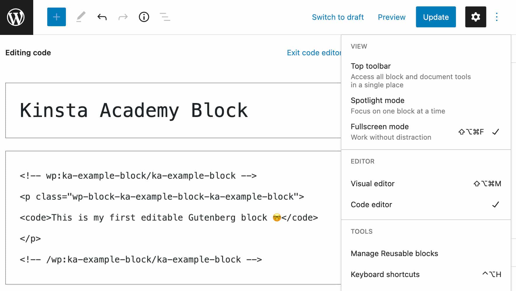 To keep things simple, we won’t cover transpiling in this article (which we nevertheless recommend familiarizing yourself with once you’ve learned the basics of block development). Instead, we’ll introduce two alternative tools you can use to quickly and easily set up a modern JavaScript development environment in few minutes. It’s up to you to choose the one you find most convenient for your project.