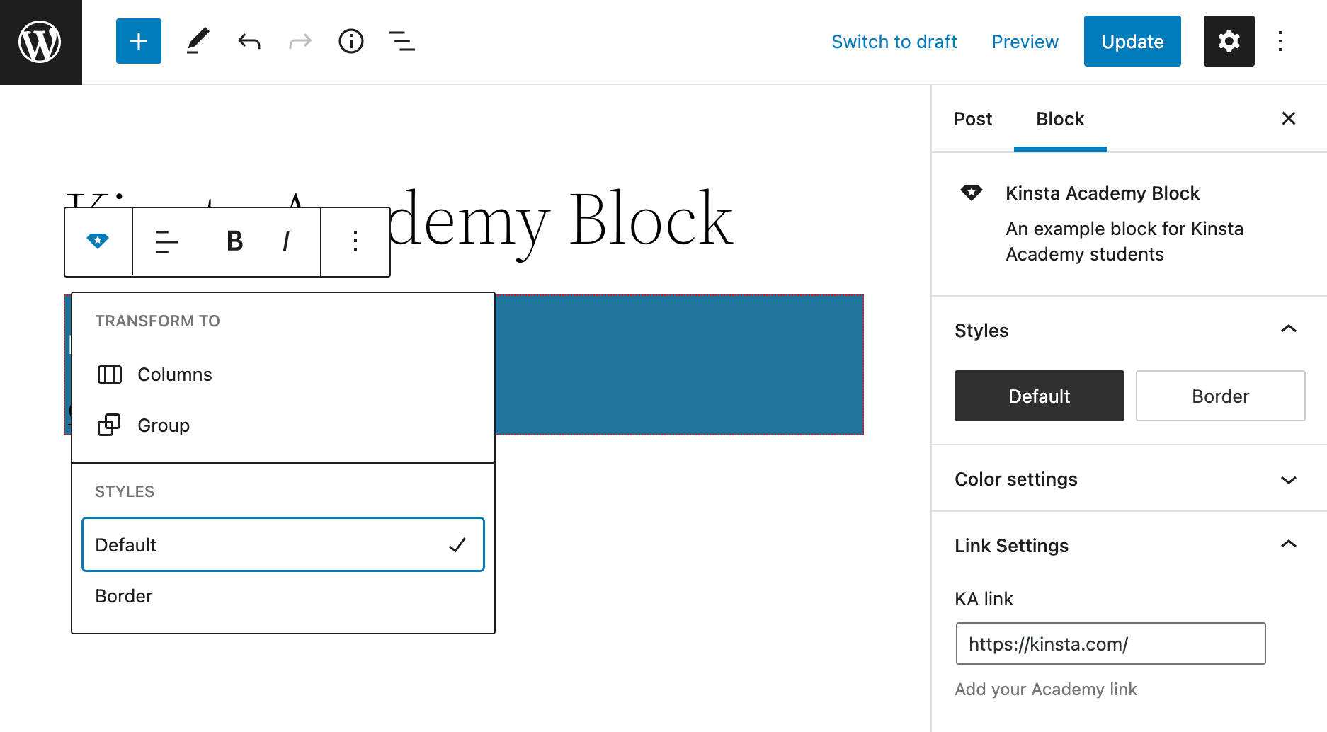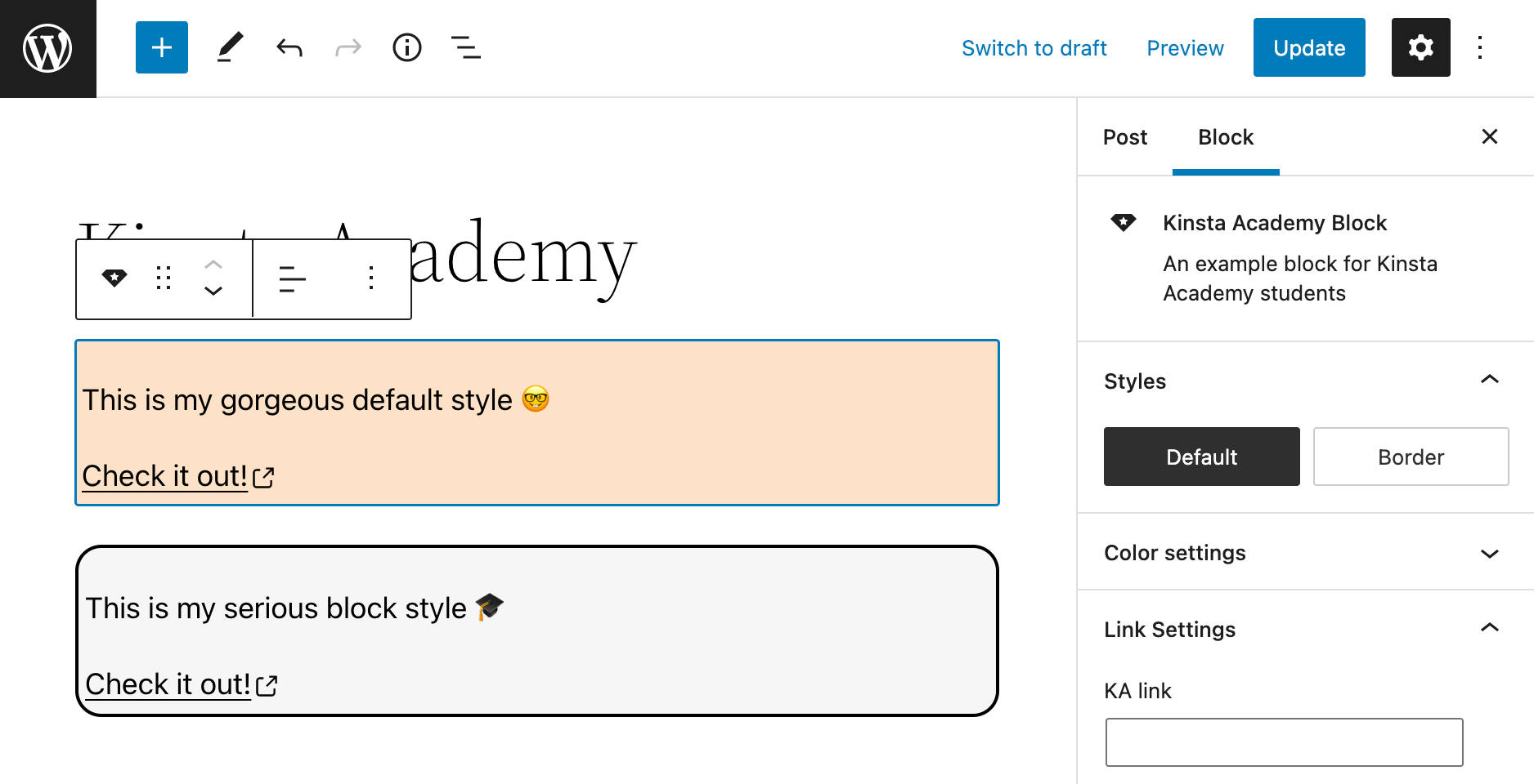 For this purpose, we’re going to use a useful feature of the Block API: Block Styles.