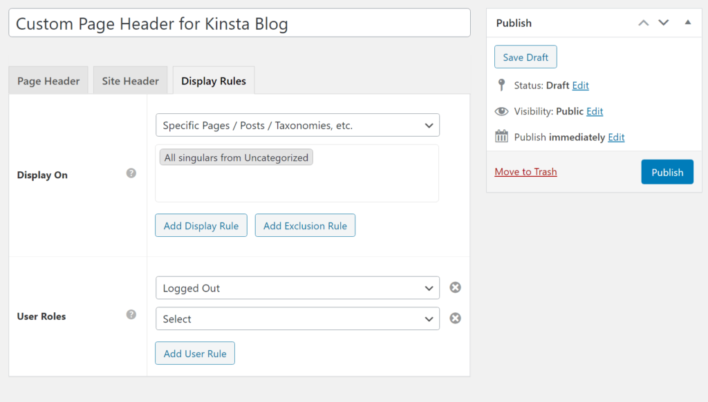 Der Clou ist, dass du Anzeigeregeln einrichten kannst, um den Hook nur bei bestimmten Inhalten auszuführen (ohne dass du Code verwenden musst). Du kannst sogar Benutzerrollen oder den Anmeldestatus festlegen.