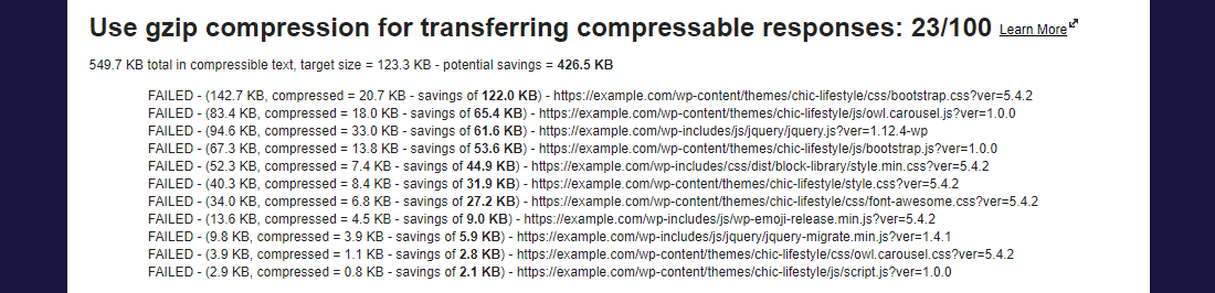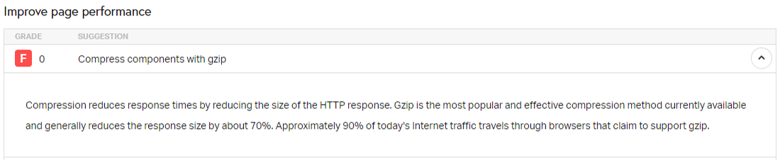 Wenn der Browser den GZIP-Response-Header nicht erkennt, lädt es die unkomprimierten Dateien herunter. In den meisten Fällen kann der Unterschied in der Ladegeschwindigkeit der Seite mehrere Sekunden betragen. Wenn du also GZIP nicht aktiviert hast, wirst du in den Geschwindigkeitstesttools der Webseiten Warnungen sehen.