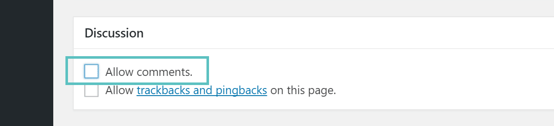 Scrolle dann nach unten, und du hast die Möglichkeit, deinen Blog-Beitrag oder deine Blog-Seite zu deaktivieren und „keine Kommentare zuzulassen“. Der einzige Nachteil dabei ist, dass dies auf einer einzelnen Post- oder Seitenebene erfolgen muss, es gibt keine globale Option.