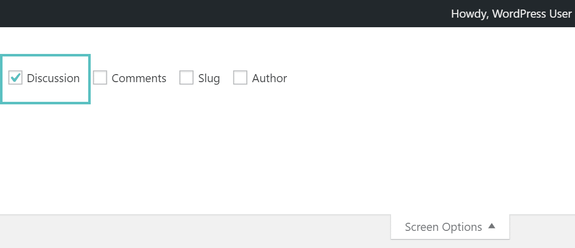 Innerhalb eines WordPress-Beitrags oder einer WordPress-Seite selbst kannst du oben rechts in die „Bildschirmoptionen“ klicken und die Option „Diskussion“ anzeigen.