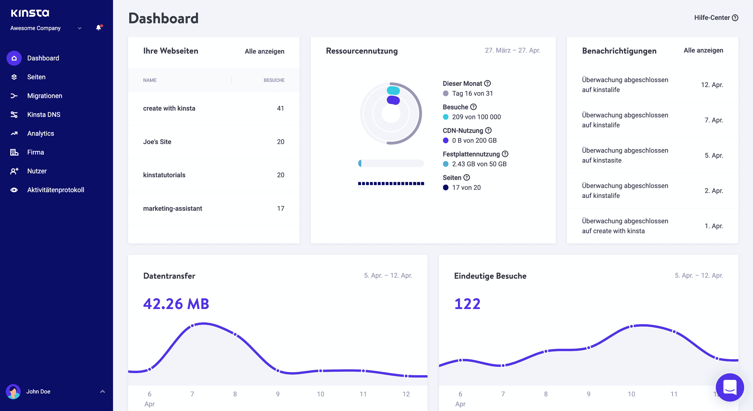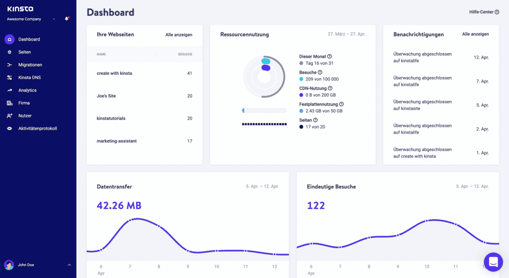 Die Verwaltung Ihrer Webseiten über das MyKinsta Dashboard war noch nie so einfach: