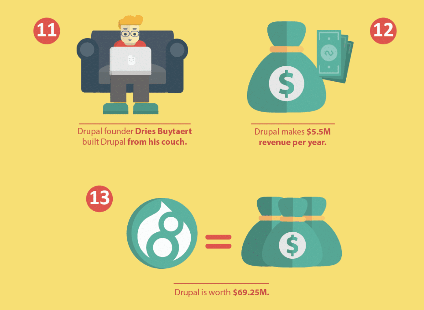 Drupal earns about $5.5 million in revenue per year and is estimated to be worth $69.25 million.