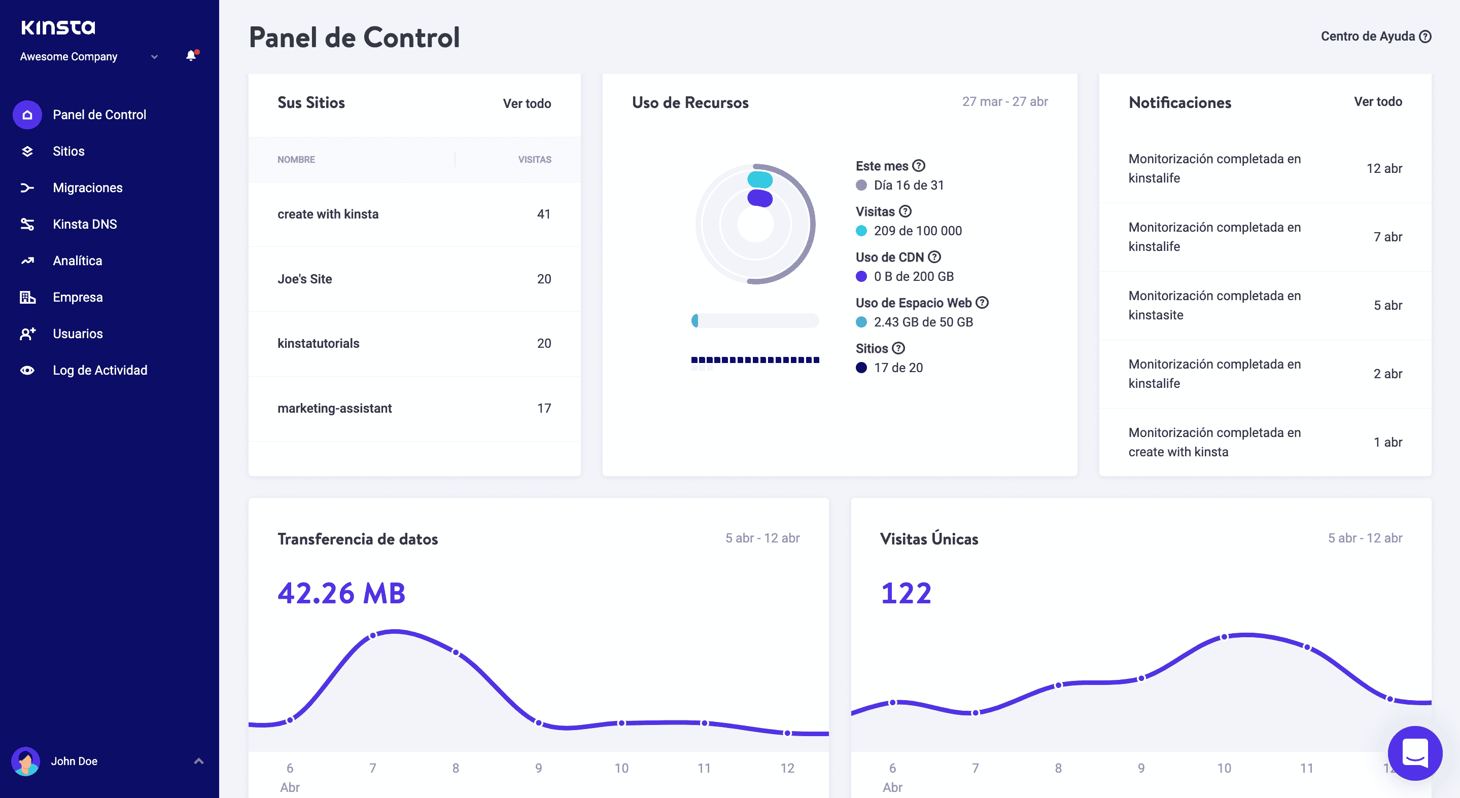 Panel de control de MyKinsta