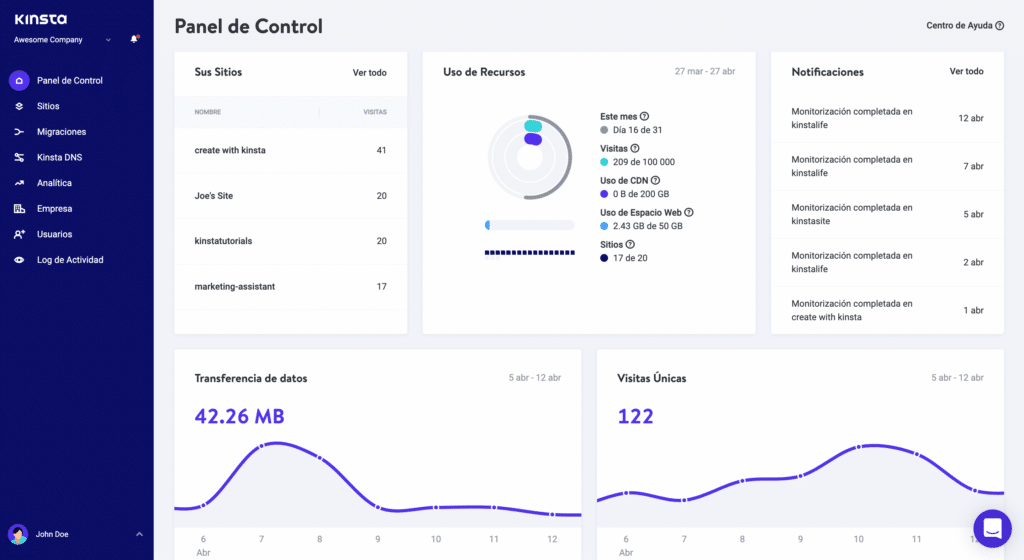 No estábamos satisfechos con los paneles de control existentes, así que construimos nuestro propio panel de control específicamente para WordPress. MyKinsta está diseñado para usuarios inexpertos y desarrolladores por igual. Gestiona tu sitio web, revisa las analíticas, colabora con tu equipo, configura la velocidad y la seguridad, accede al soporte de chat en vivo y mucho más.