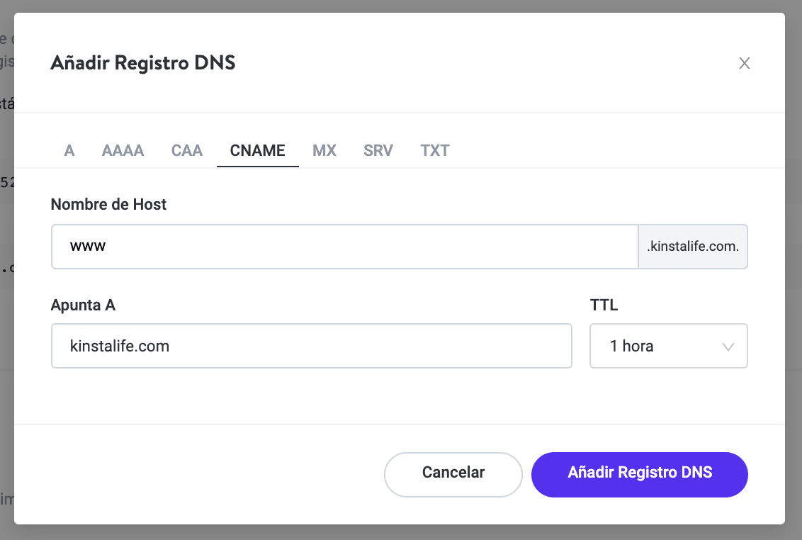 Paso 3 – Agregue Registros DNS en MyKinsta