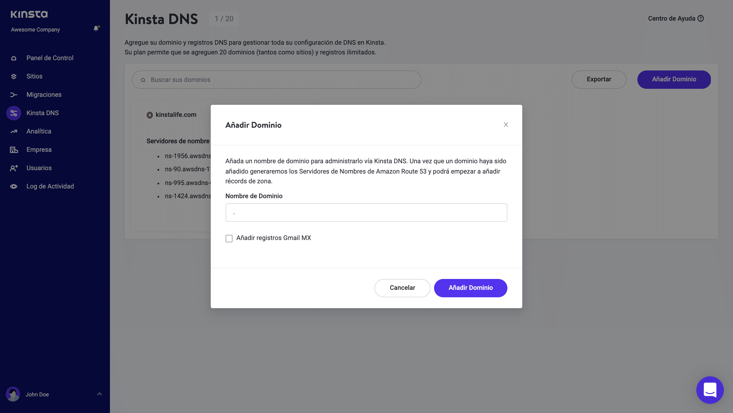 ¡El DNS premium de Amazon Route 53 está incluido sin costo alguno para todos los clientes de Kinsta!
