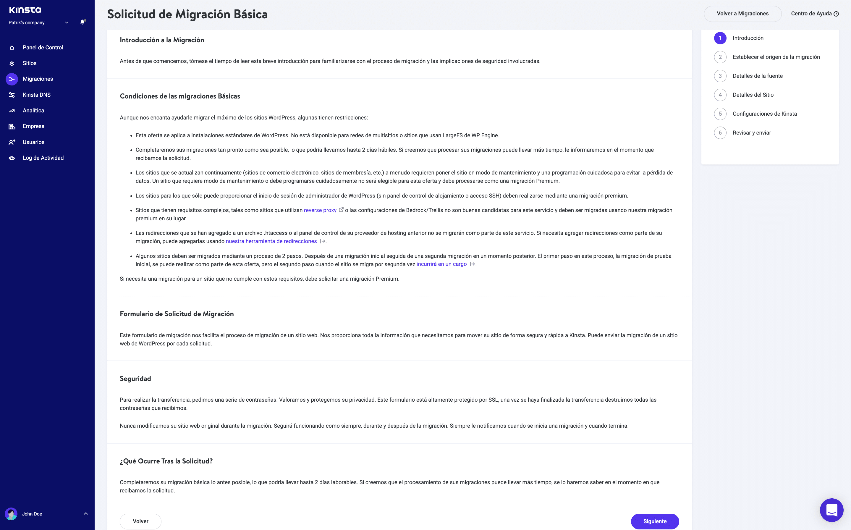 Cuando usted inicia una migración, requerirá llenar un formulario de seguridad, el cual nos ayuda al brindar información que nuestro equipo de soporte necesitará, como: