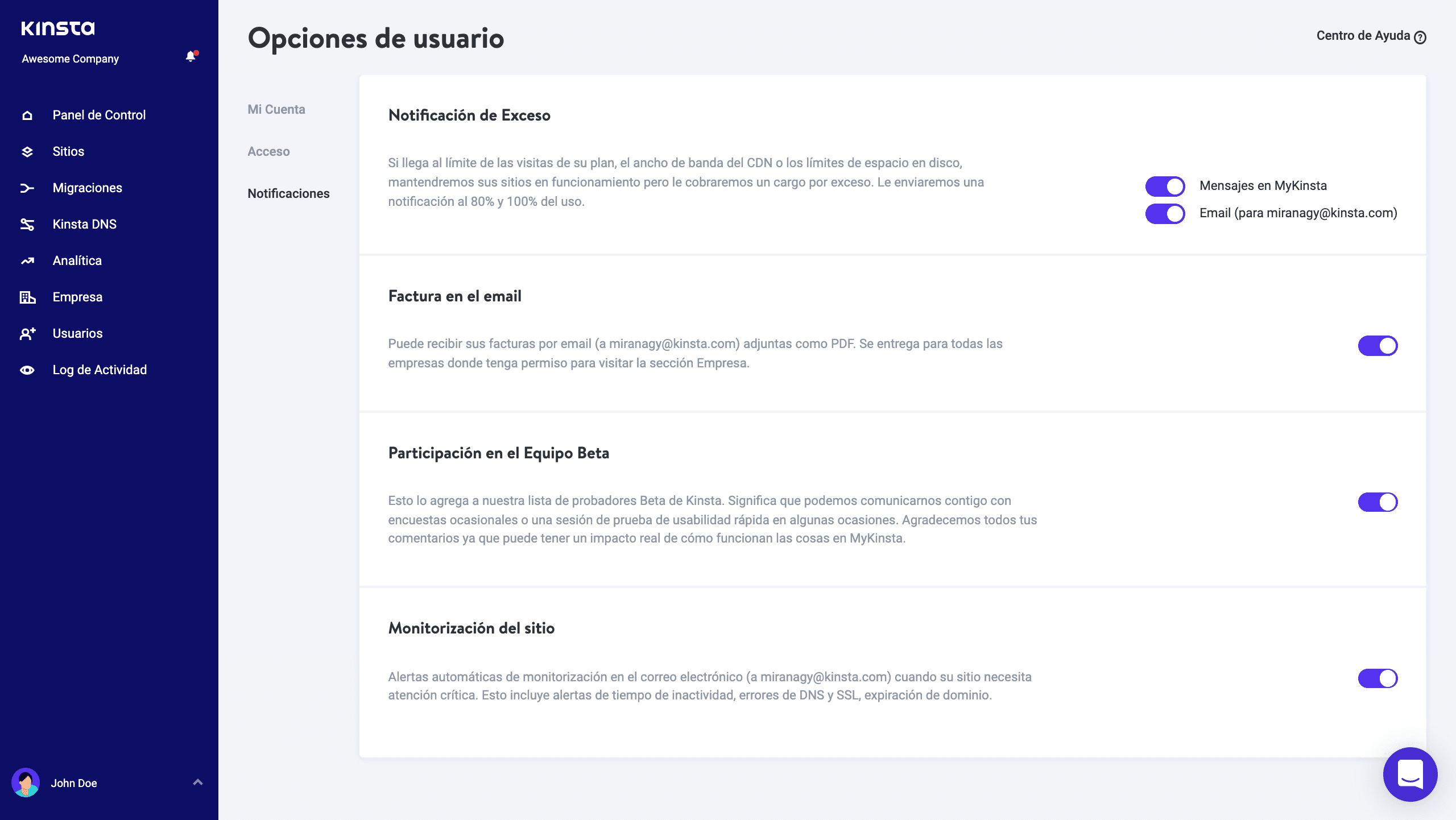MyKinsta soporta una variedad de notificaciones por correo electrónico para ayudarte a mantenerte al día con tu sitio de WordPress!