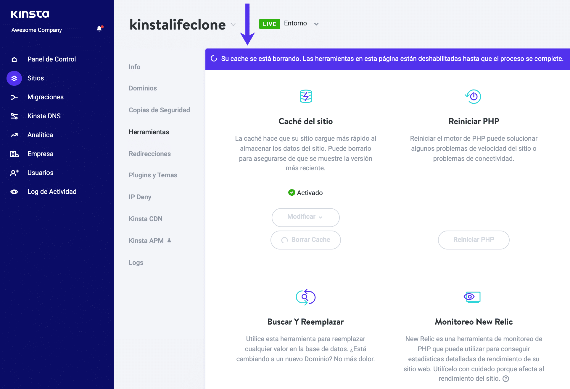 ¿Cómo borrar la caché de Kinsta desde el panel de control de WordPress?