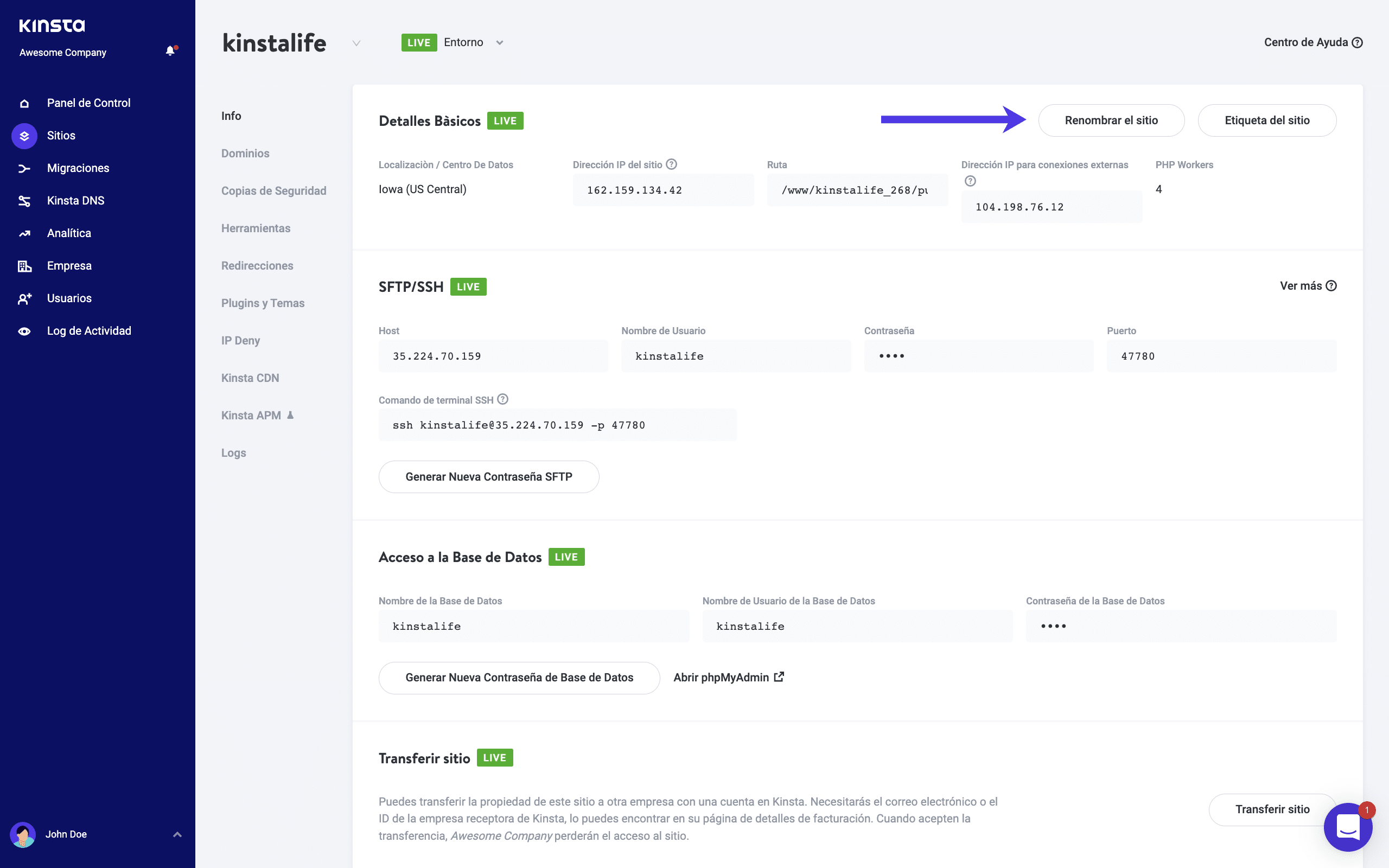 - Haz clic en «Cambiar el nombre del sitio» para guardar el nuevo nombre.
