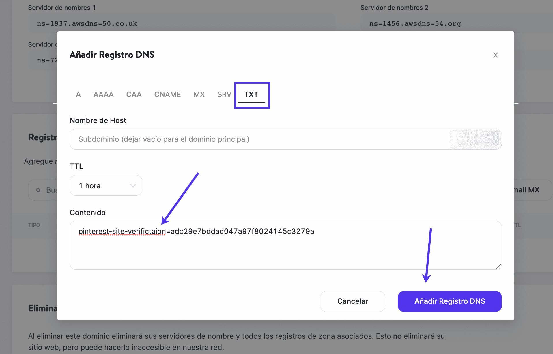 Paso 4: Añade un nuevo registro TXT de DNS