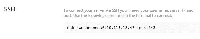 De hecho, si estás usando la terminal, puedes simplemente copiar y pegar el comando generado para ti en tu sección SSH para conectarse de forma instantánea (Aun así necesitarás ingresar tu contraseña por supuesto).