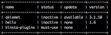 Para hacer algo aún más útil, podrías usar wp plugin update – all <el cual actualizaría todos tus plugins al mismo tiempo, o wp plugin update – all -dry-run el cual le daría una lista de plugins que serían actualizados si utilizas el primer comando.