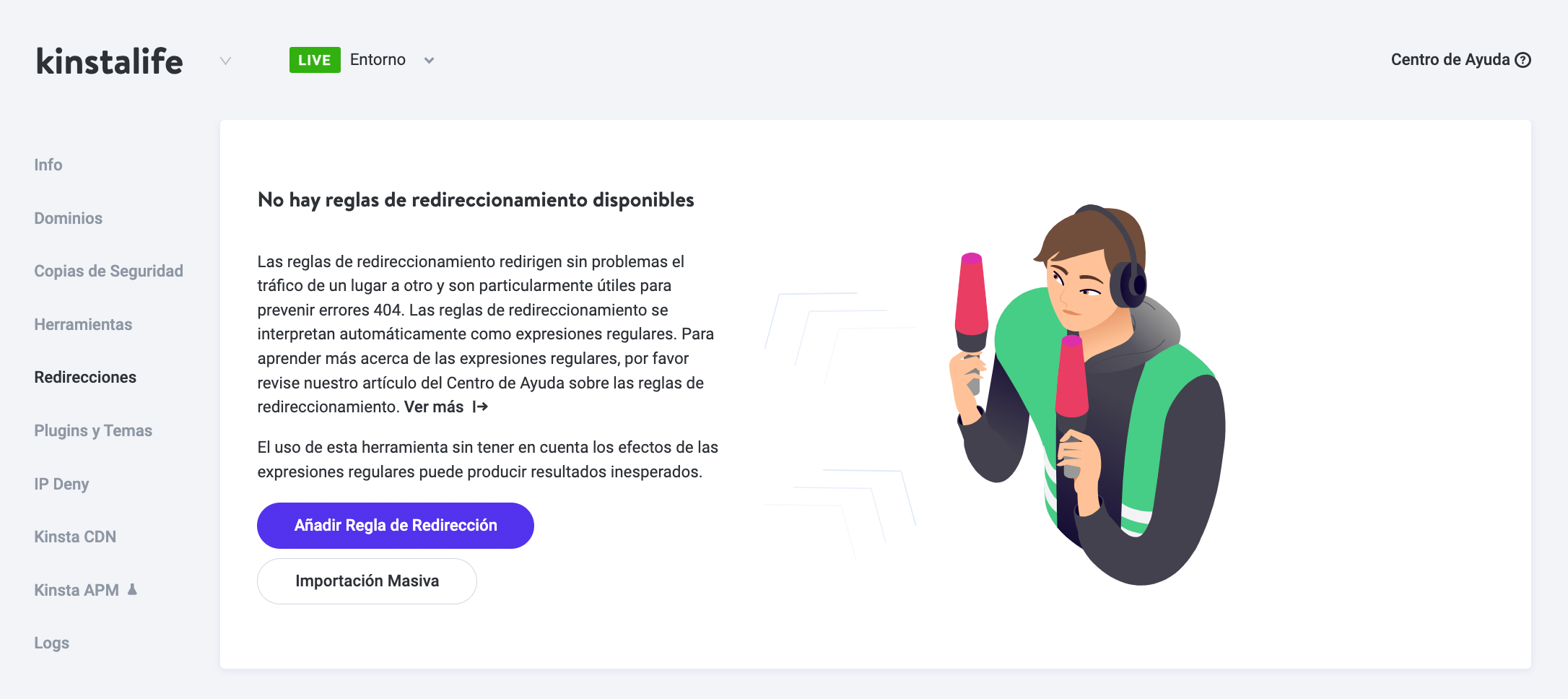 Si estás con Kinsta, puedes crear reglas de redireccionamiento en el panel de control de MyKinsta.