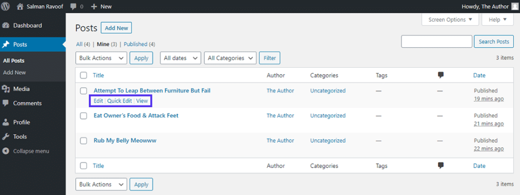 Por ejemplo, WordPress otorga a los autores la capacidad de edit_posts para sus propios posts para que puedan editarlos. Sin embargo, esta capacidad no les permite editar los mensajes de otros usuarios. Aquí es donde las meta-capacidades ayudan.