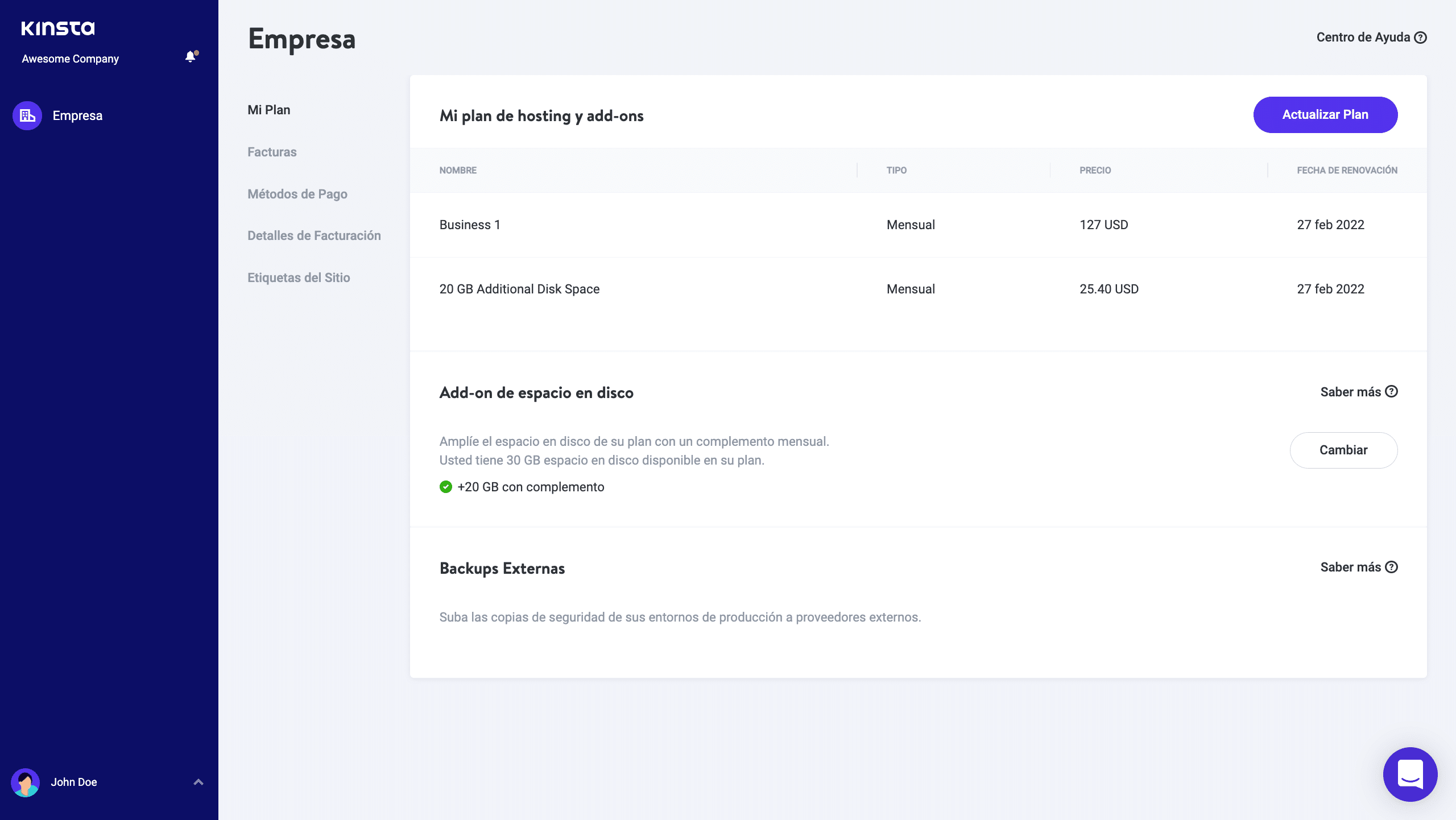 Sólo el dueño de la compañía puede solicitar a Kinsta que elimine la cuenta.