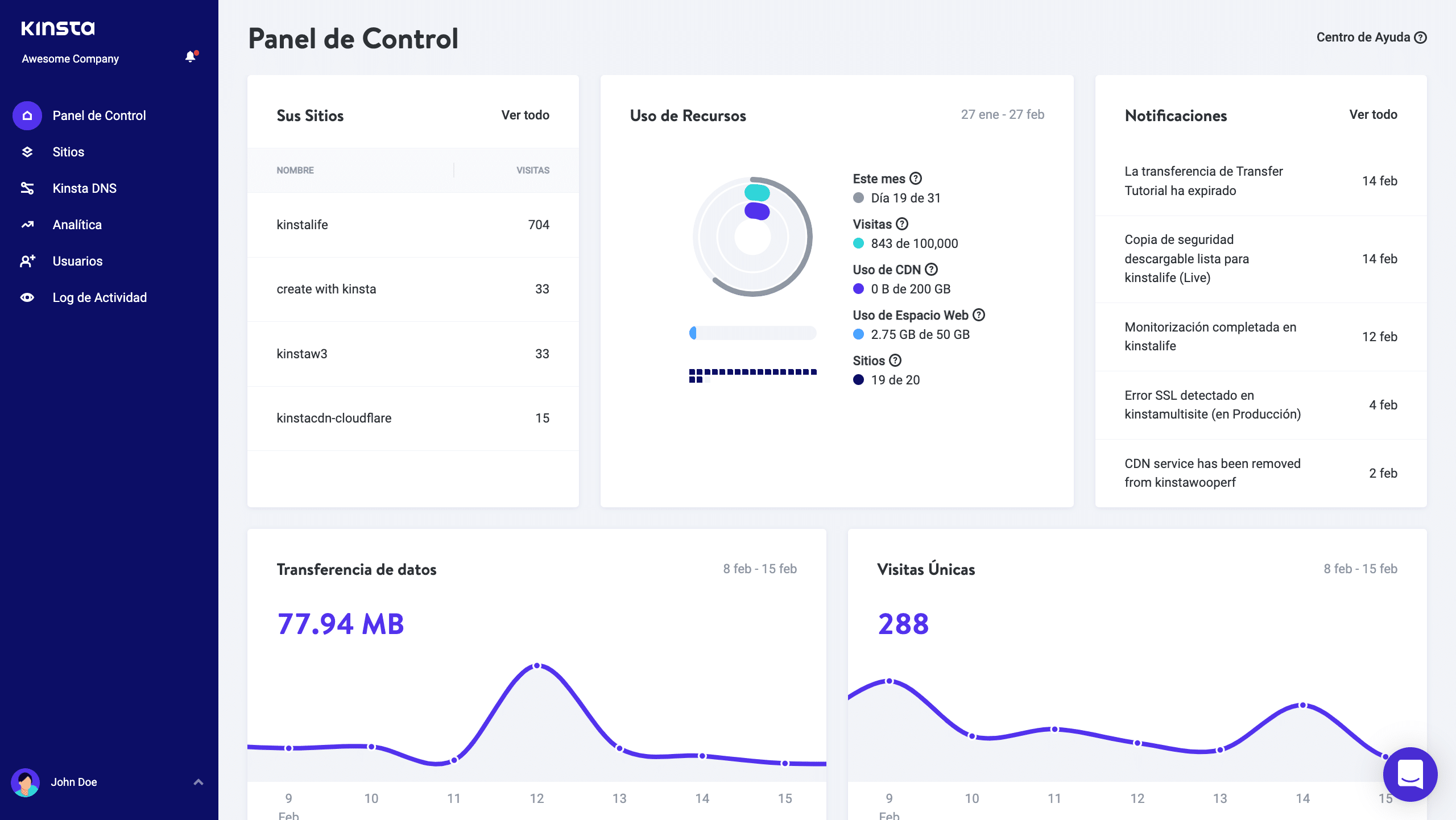 Como propietario de una cuenta Kinsta, la función de roles multiusuario de MyKinsta te ayuda a gestionar con facilidad un equipo de gerentes, desarrolladores y contables. Facilita enormemente a las agencias de desarrollo web la gestión de todos los sitios de tus clientes desde un único y potente panel de control.