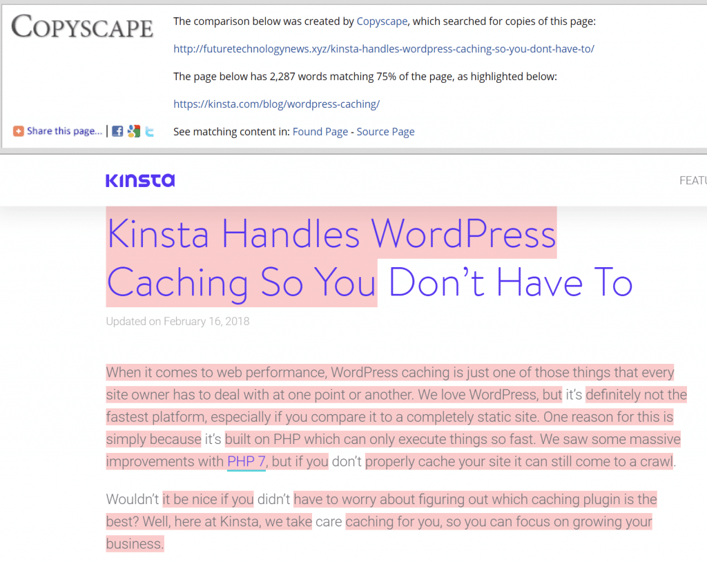 El scraping de contenido, o lo que preferimos llamar «robo de contenido», ha sido un problema desde el inicio del Internet. Para cualquiera que publique de forma regular o que trabaje con la optimización de motores de búsqueda (SEO), puede ser en realidad bastante irritante. ? Cuanto más crezca, más se dará cuenta de cuántas granjas de scraping de contenido existen. Publicamos mucho contenido aquí en Kinsta y el filtrado de contenido es un problema con el que lidiamos regularmente. La pregunta es, ¿debería tratar luchar contra ello o simplemente ignorarlos y seguir adelante? Hoy profundizaremos en algunos de los pros y contras de ambas.