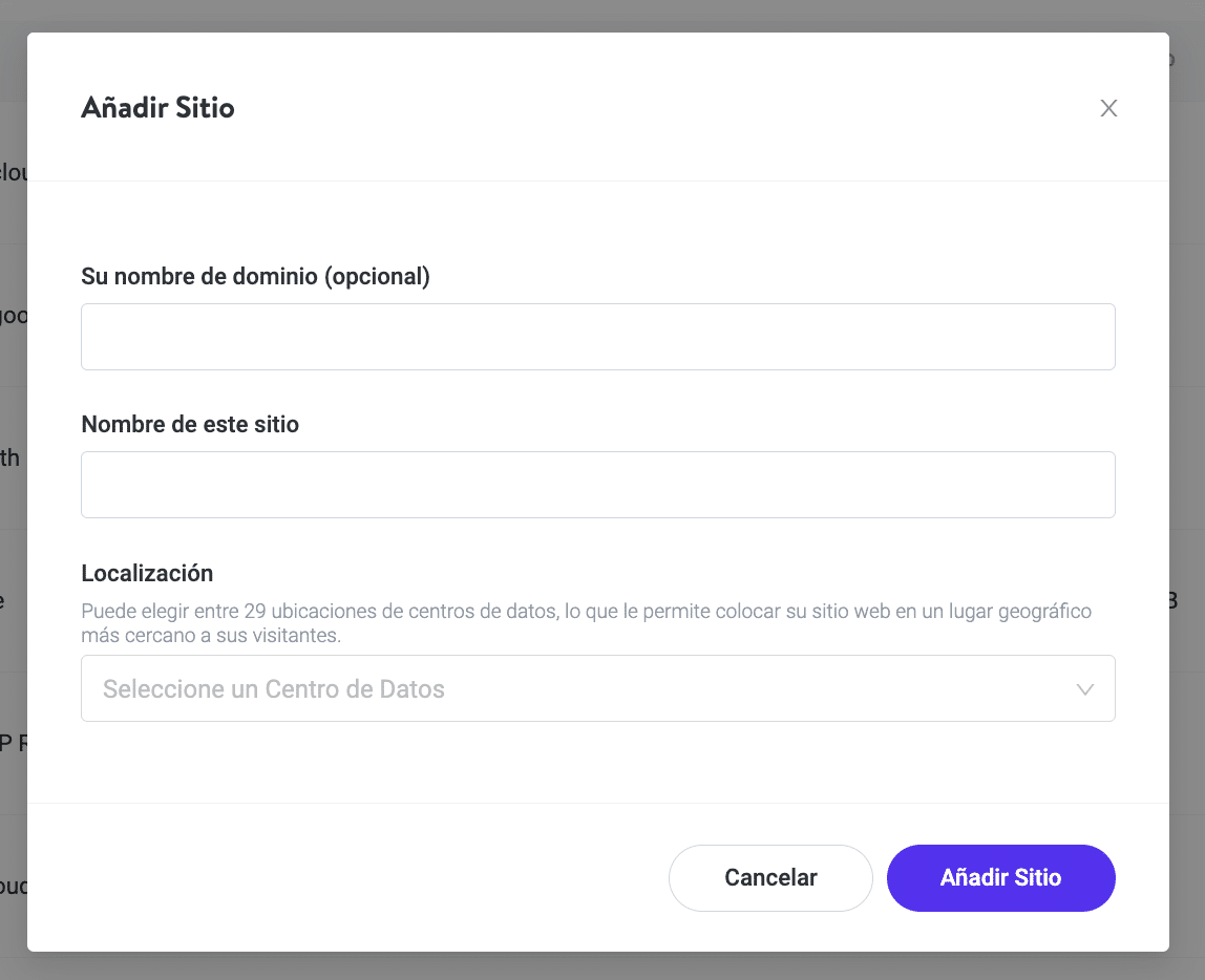 Si eliges un alojamiento de aplicaciones, bases de datos y WordPress administrado como Kinsta, no tienes que configurar nada en el servidor. Puedes lanzar un nuevo sitio en cualquier momento. Sólo tienes que entrar en el panel de control de MyKinsta y hacer clic en «Añadir un Sitio«. Tu mayor tarea será simplemente tratar de elegir estratégicamente entre las 35 ubicaciones diferentes de centros de datos que te ofrecemos para alojar tu sitio.