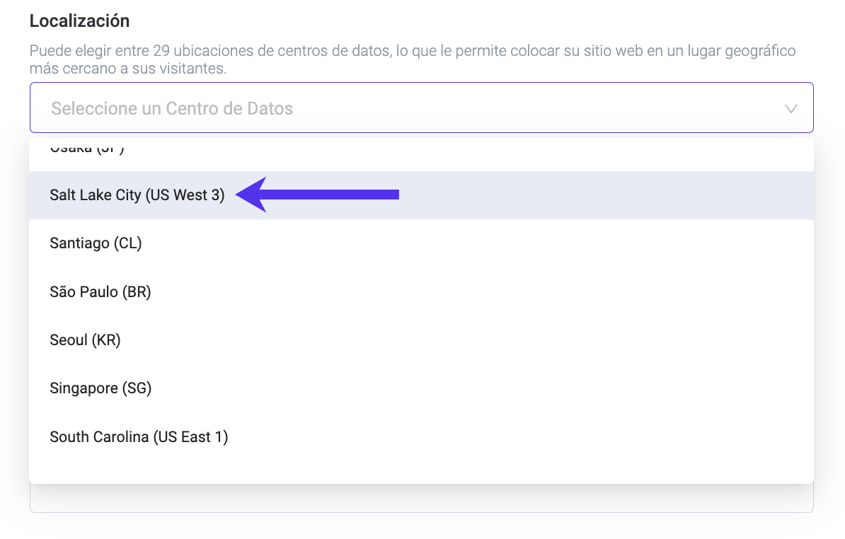 Específicamente, desde el tablero de MyKinsta,, se puede elegir a «Salt Lake City» como su opción de preferencia cuando añada un nuevo sitio.