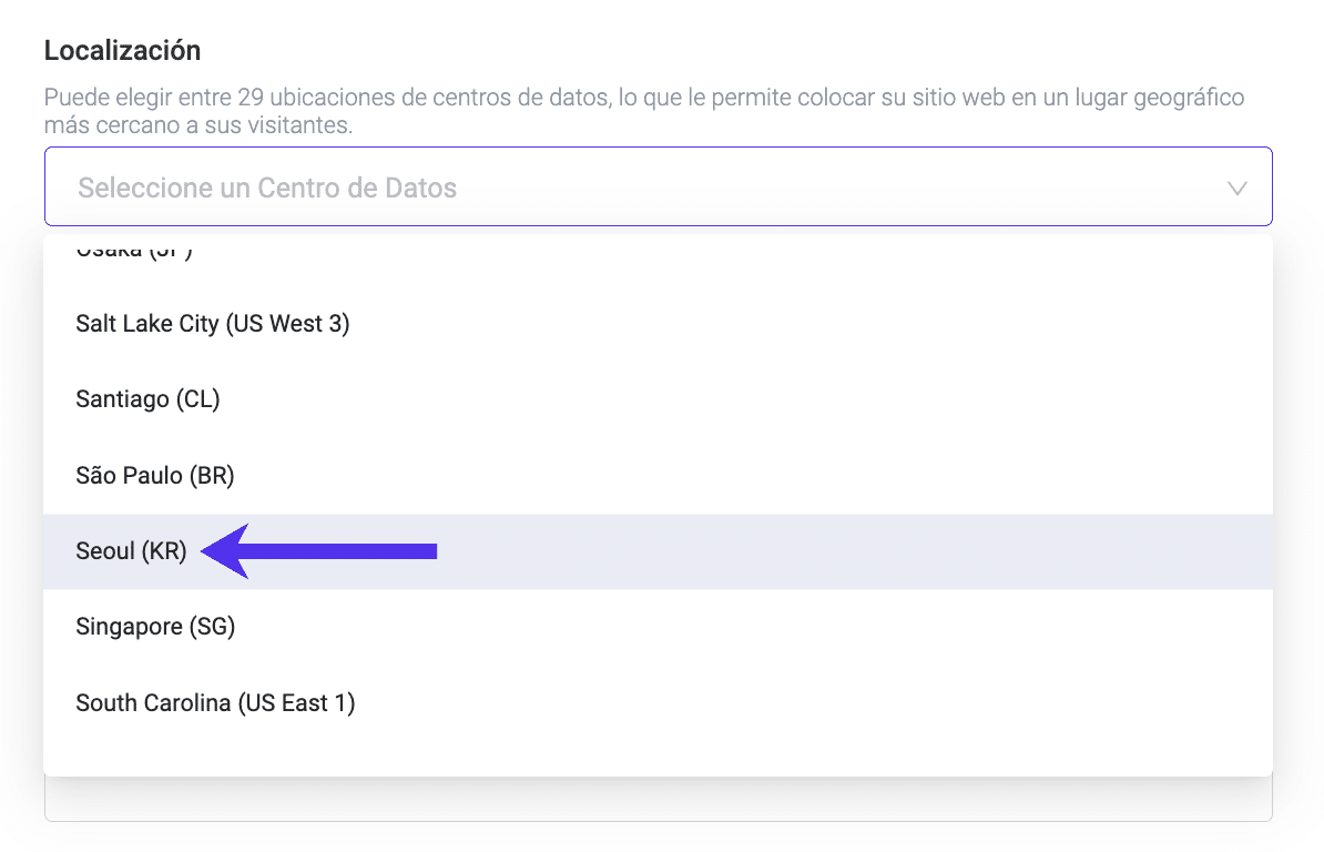 Específicamente, desde el panel de MyKinsta, puede elegir «Seúl» como su opción preferida cuando añada un nuevo sitio.