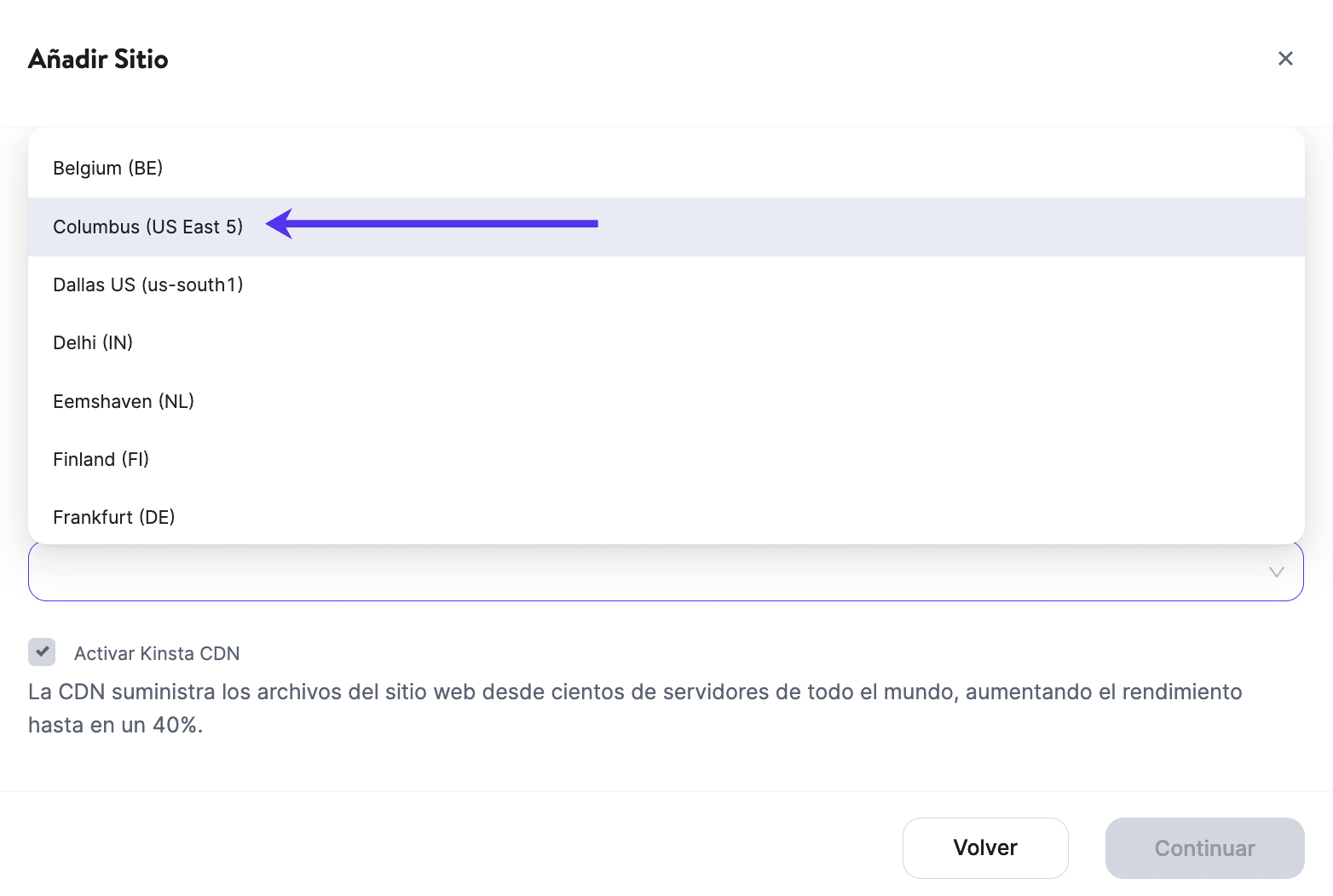 Para establecer Columbus como tu centro de datos en MyKinsta, sólo tienes que seguir estos pasos:
