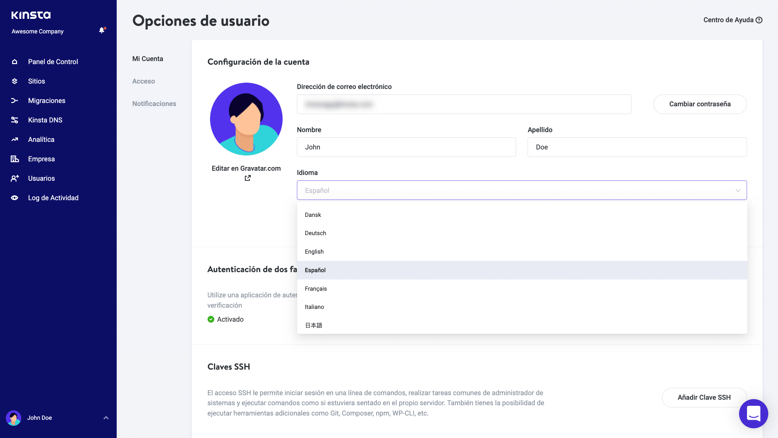 Siempre estamos tratando de encontrar maneras de facilitar la administración de sus sitios de WordPress. Nuestros equipos de desarrollo y expansión global han estado trabajando sin descanso para ofrecerle Kinsta en todos los idiomas. Si bien nuestro sitio web ya ha estado disponible en español durante algún tiempo, nos complace anunciar que nuestro panel MyKinsta también está disponible en español.
