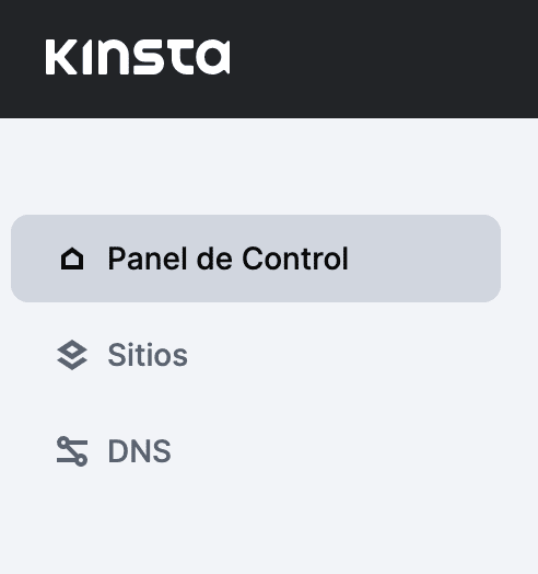 Para aquellos inscritos en la beta de Kinsta para las nuevas soluciones de Alojamiento de Aplicaciones y Alojamiento de Bases de Datos, la barra lateral tiene un aspecto ligeramente diferente, añadiendo Aplicaciones al menú y cambiando el nombre de Sitios a Sitios WordPress: