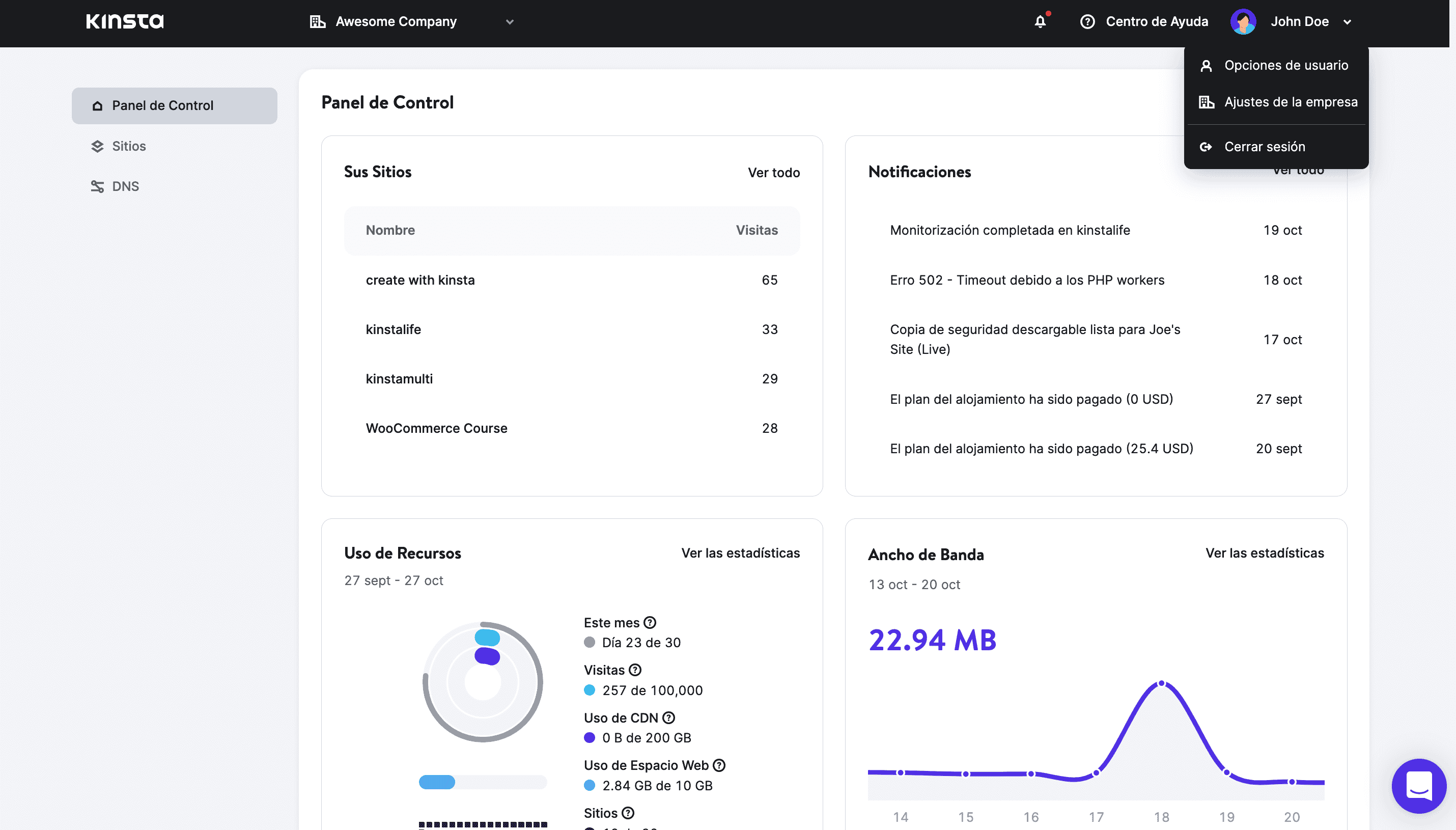 Gracias a la última versión de MyKinsta, ahora es más fácil recuperar y gestionar la información tanto a nivel de sitio como de empresa:
