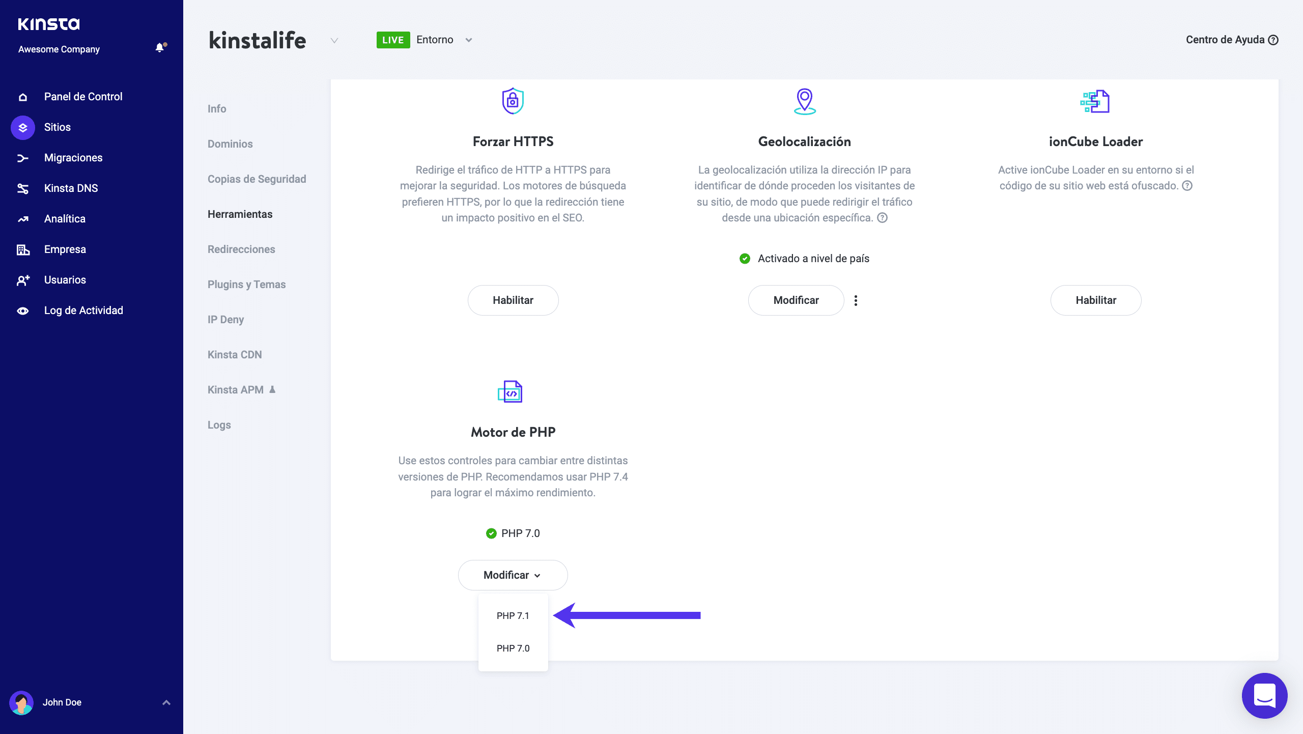 No se olvide que se puede cambiar PHP de acá para allá, si se enfrenta con problemas de compatibilidad con relación a PHP 7.1 ya que se puede restaurar PHP 7.0 en cualquier momento. Puede aprender más sobre los cambios de la nueva versión en nuestra entrada de blog aquí.