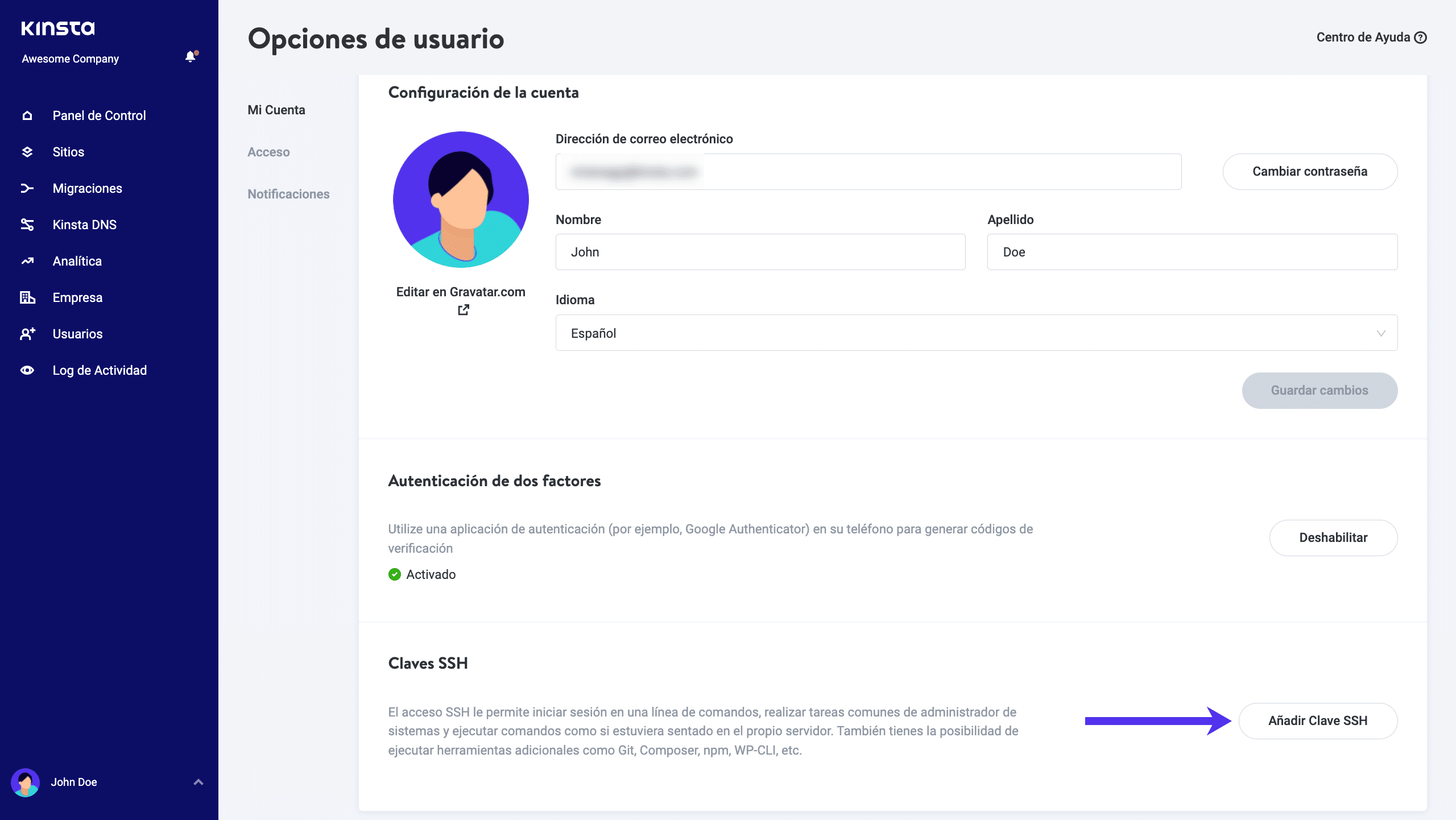 No se olvide ahora puede agregar sus claves SSH con facilidad en MyKinsta.