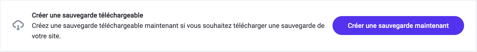L’une des façons les plus simples d’importer un site est de créer une sauvegarde téléchargeable. Visitez la section Sauvegardes pour le site de votre choix et allez sur l’onglet Téléchargement puis créez une sauvegarde téléchargeable. Cela peut prendre un certain temps si vous avez un grand site, mais vous finirez par pouvoir la télécharger.