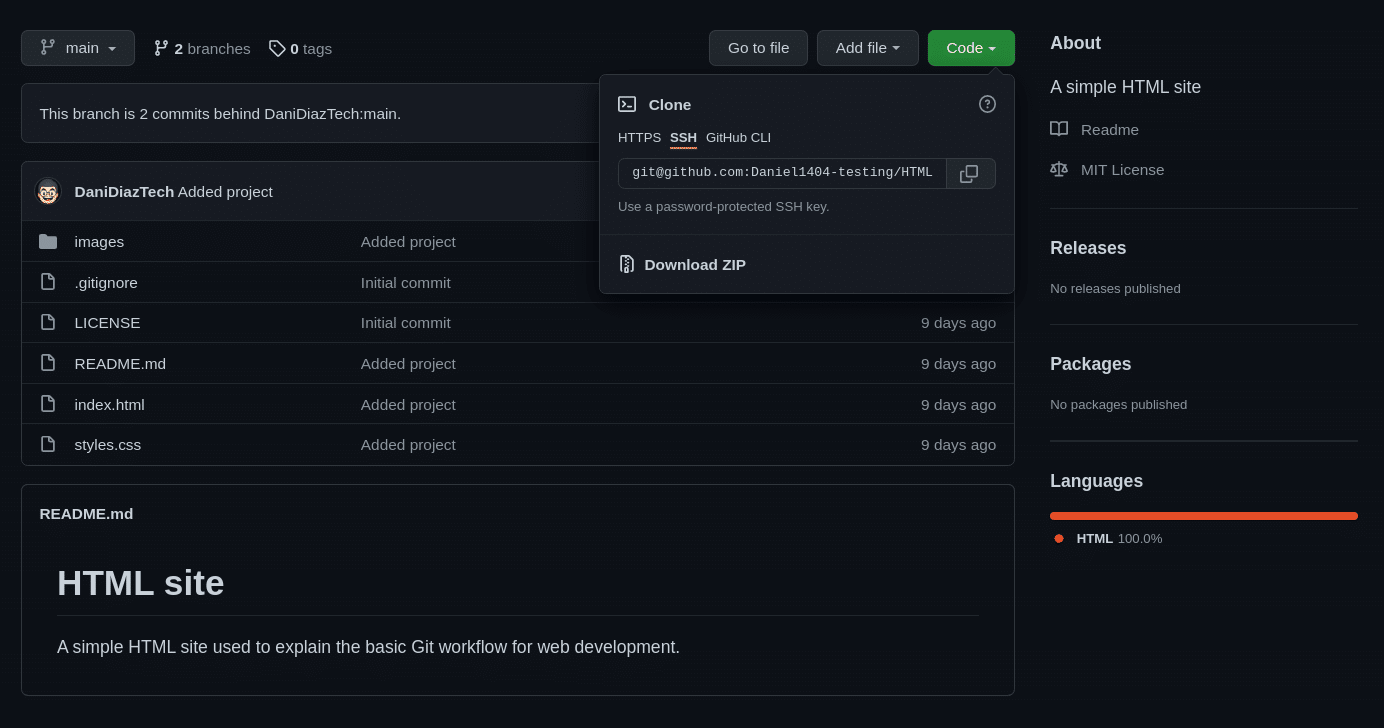 git clone [email protected]:yourusername/HTML-site.git