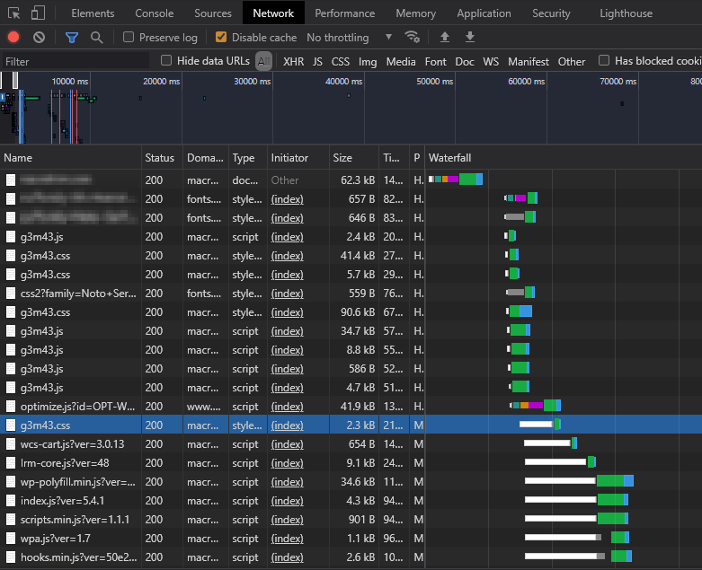 • -domain:*<.yourdomain.com>: Affiche les requêtes tierces qui ne sont pas chargées depuis votre domaine principal. Celles-ci contribuent grandement à la lenteur des sites.