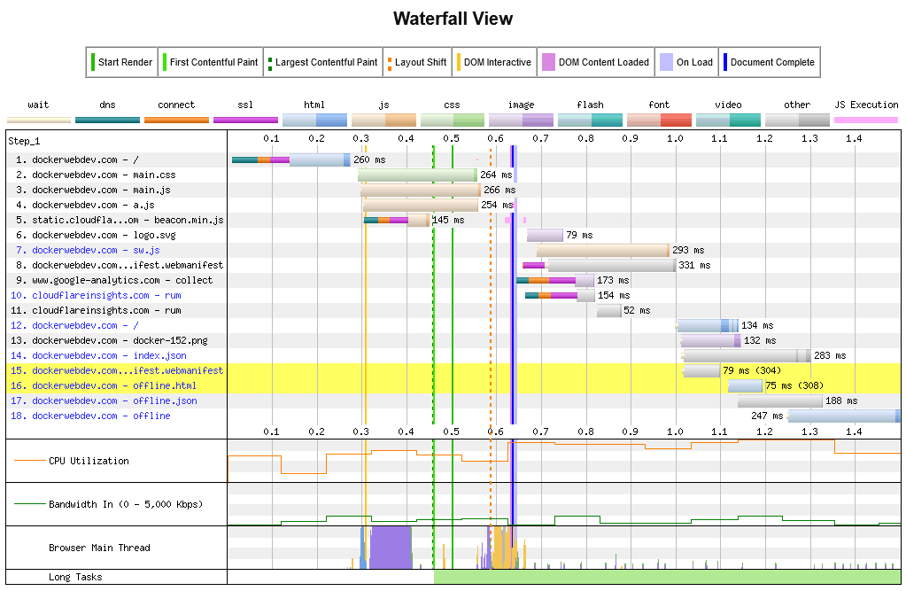 Rafraîchissez la page pour afficher le graphique de la cascade de téléchargement et de traitement :