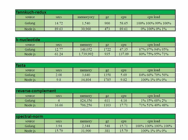 Confronto tra Node.Js vs. Golang