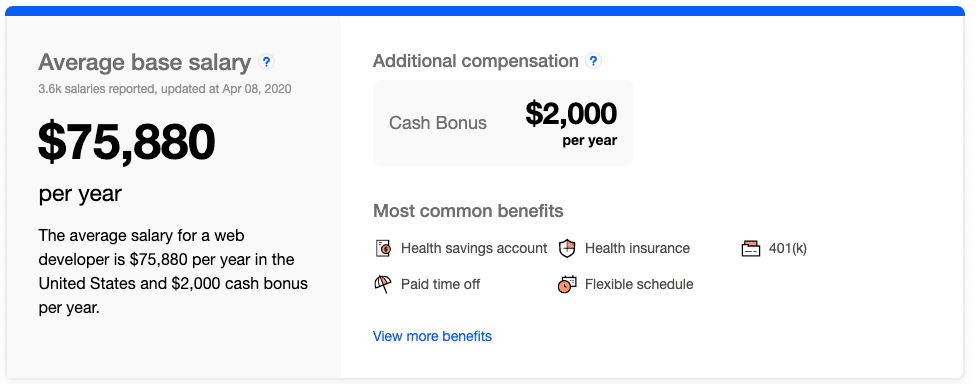 Come detto prima, lo sviluppo web è un campo altamente specializzato e la retribuzione medio non è la fine della storia.