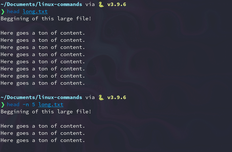 Toont de eerste regels van een bestand |