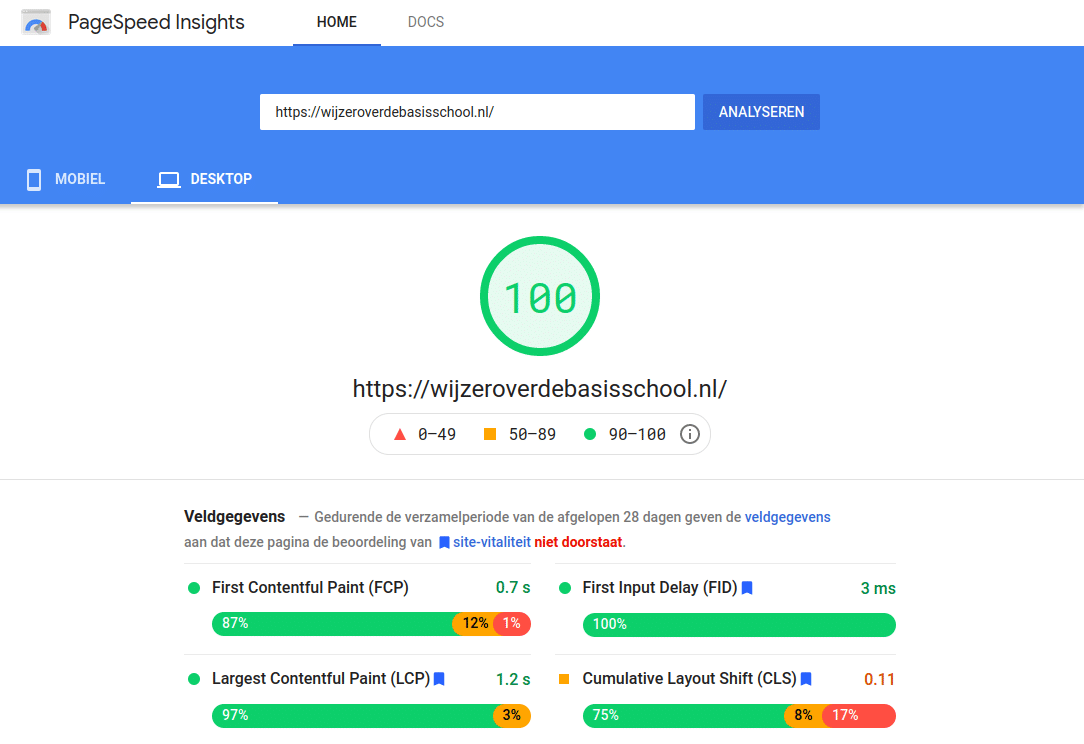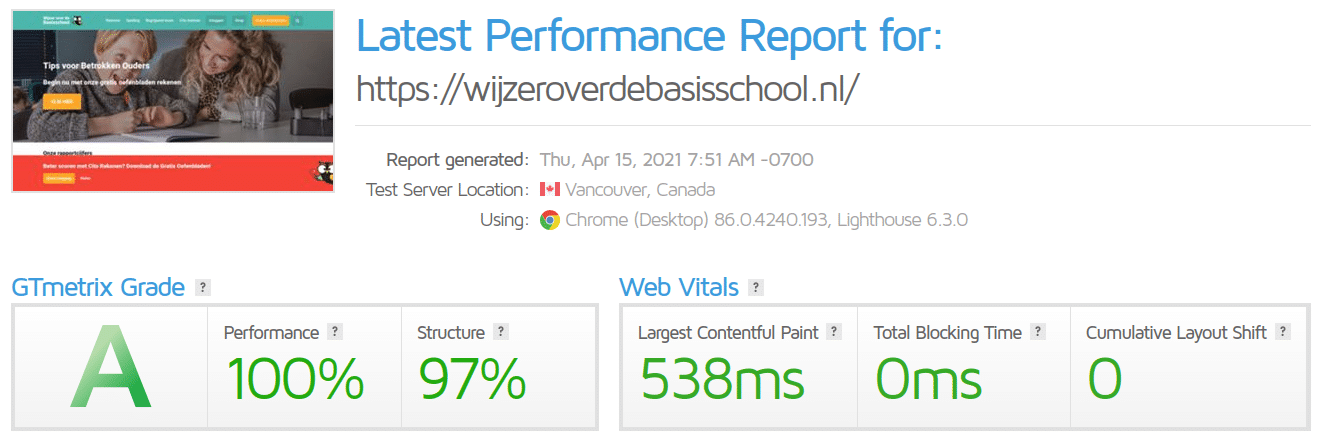 Het project ‘Wijzer over de Basisschool’ is een goed voorbeeld van wat het resultaat is van een samenwerking met Kinsta. Door een maatwerk Gutenberg thema en de razendsnelle hosting van Kinsta, zijn we in staat geweest om een Google PageSpeed Insights score van 100 en GTmetrix score van 100 te behalen. Hier waren niet alleen wij, maar ook de klant erg tevreden over. Hier maakt een goede hoster zoals een Kinsta een wereld van verschil!”