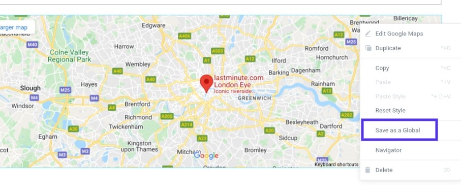Para fazer isso, crie o mapa que você quer usar e salve-o como um Global Widget clicando com o botão direito no ícone do lápis e selecionando Save as Global: