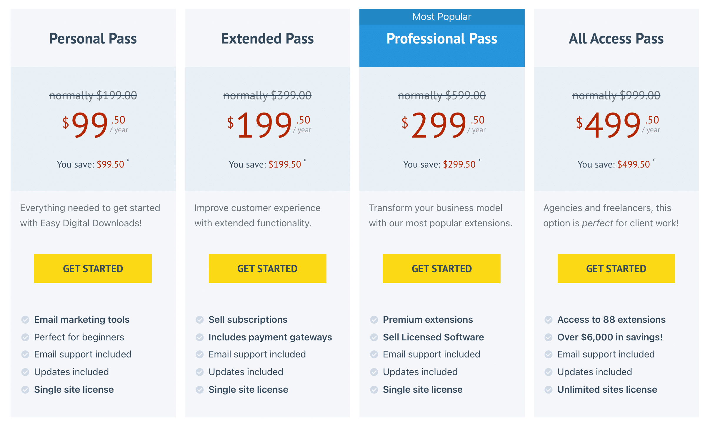 - Os pacotes do Easy Digital Downloads podem torná-lo mais acessível, especialmente se você precisar de muitas extensões ou estiver executando várias lojas.