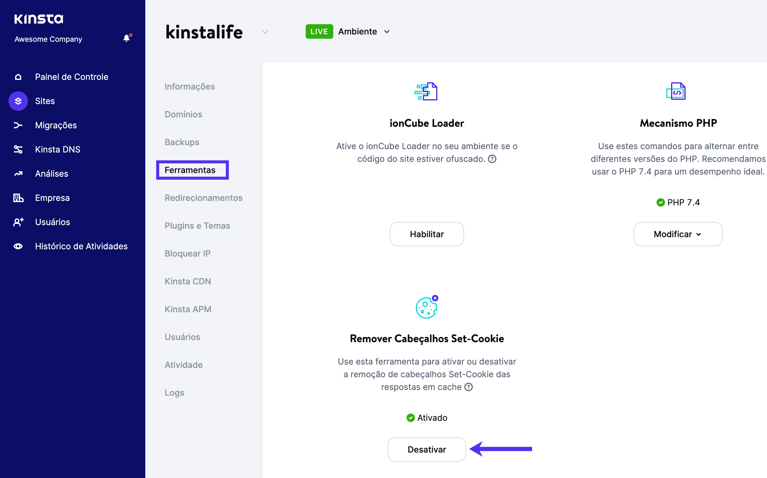 Agora disponível para todos os clientes Kinsta, esta nova ferramenta permite que você ative ou desative a remoção dos cabeçalhos Set-Cookie das respostas em cache, acelerando seu site e construindo confiança com sua base de usuários.